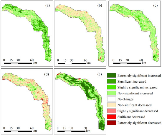 - Xu, Y.; Dai, Q.-Y.; Lu, Y.-G.; Zhao, C.; Huang, W.-T.; Xu, M.; Feng, Y.-X. Identification of ecologically sensitive zones affected by climate change and anthropogenic activities in Southwest China through a NDVI-based spatial-temporal model. Ecol. Indic. 2024, 158, 111482. [Google Scholar] [CrossRef]