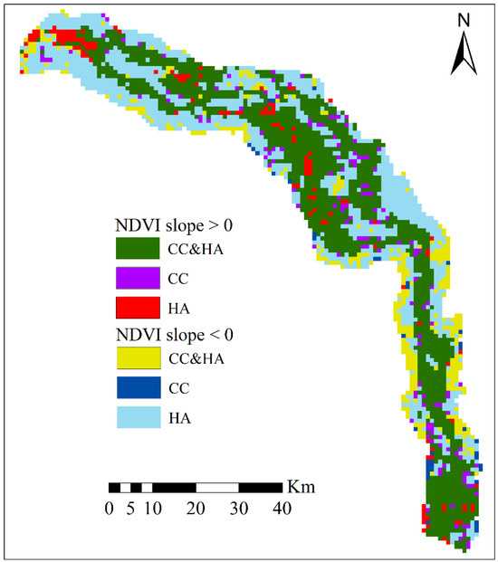 | Slope (NDVICC) | Slope (NDVIHA) | Climate Change (CC) | Human Activity (HA) | ||