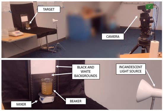 Three samples of pixels were taken from each image: 20 × 30 pixels of sediment data at the bottom of the beaker where the sediment was fully mixed and 15 × 20 pixels of control data from both the black and white image background. For both the sediment and control samples, the average and standard deviation were calculated across the horizontal and vertical dimensions, and these data were stored for each of the 113 data channels (113 × 30 × 20 data recorded per image). A sample image is shown below in