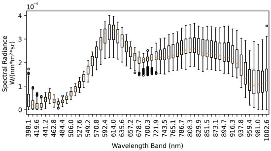 The analysis of the control data showed that the radiance of the background paper could vary by 1–2% for the bands between 430 and 1000 nm. Greater variation of up to 50% was observed in the bands between 400 and 430 nm; the signal from these bands was relatively weak.