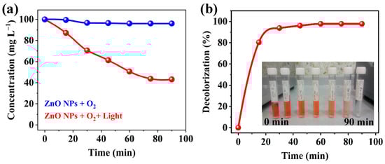 - Barrios-Navarro, F.A.; Vilchis-Nestor, A.R.; Luque, P.A. Photocatalytic degradation of organic dyes in water using semiconductor ZnO nanoparticles synthesized using Crataegus mexicana extract. Mater. Chem. Phys. 2024, 318, 129302. [Google Scholar] [CrossRef]