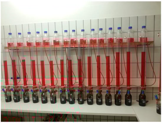 Laboratory setup for evaluation of the RGP in specific sludge samples using eudiometric tubes.