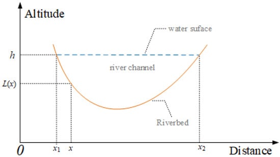 In the equation, h represents the height of the riverbed, while and represent the upper and lower boundaries of the river surface, respectively. It can be seen from the equation that A is a nonlinear function of h. However, within a very small range of h changes, it can be represented by a linear relationship (4):