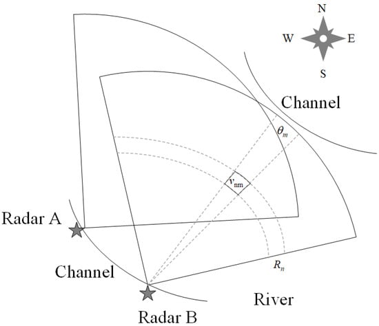 Ultra-high frequency radar technology has become increasingly mature and can be used for measuring river flow velocity [17,18,19]. Its measurement principle is based on the Bragg scattering theory and the Doppler effect. After obtaining the surface flow velocity of the river, the flow rate can be calculated using machine learning algorithms [20,21,22,23], the logarithmic method, the velocity–area method [24,25], or the exponential velocity method [26,27]. In recent years, there has been a proposal to use the exponential velocity method for real-time monitoring of river flow [28,29]. The current methods for calculating the average cross-sectional flow velocity of rivers using the exponential velocity method must consider the impact of water level. When water level fluctuations are small, using radar to measure the water level may result in significant errors. Additionally, in curved rivers, the flow velocity distribution on both sides of the riverbed is asymmetrical, which may lead to changes in the main channel of the river and even cause the river to breach its banks [30,31,32,33]. Therefore, it is necessary to monitor changes in the velocity or discharge distribution in curved rivers.