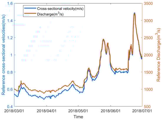 Liu et al. [30] conducted a study on narrow and deep rivers in mountainous areas. They chose the average of the maximum surface flow velocity as the reference velocity. Their study also took into account the high curvature in winding river channels when selecting the reference flow velocity, and similarly, they chose the average surface flow velocity as the reference velocity. In the approximate calculation of the cross-sectional area, Liu and Yang et al. [29] used a quasi-rectangular cross-section to estimate the river’s cross-sectional area. In the estimation of the river’s cross-sectional area.