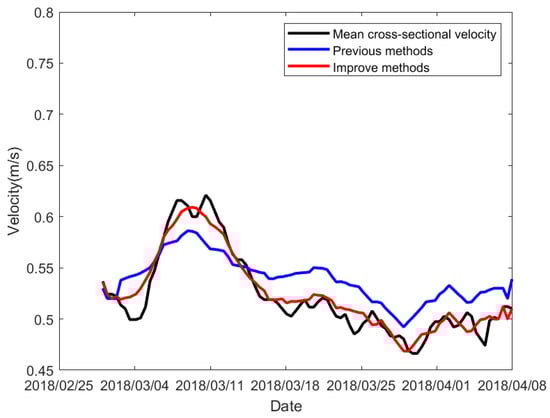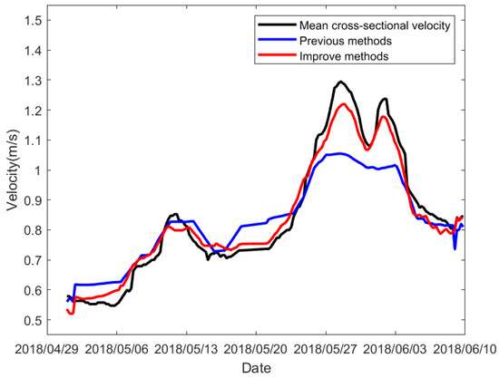 The improved model deletes the effect of water level on the calculation of cross-section velocity, and the use of second-order models for fitting the mean cross-section velocity of a river is also very frequent.
