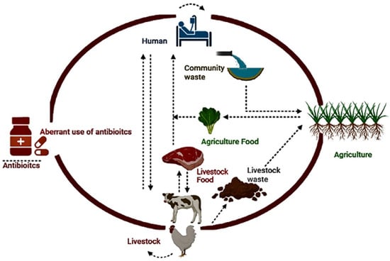 Several empirical studies have shown evidence for antibiotic-resistant genes (ARGs) in animals, food products, and human populations. These findings highlight the concrete risk associated with the activation and spread of these genes to other organisms [37,38,39,40,41,42,43,44,45].
