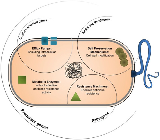 Functional mechanisms of the microbial resistome. Adapted with permission from Reference [69]; Published by Perspectives in Water Pollution, 2013.