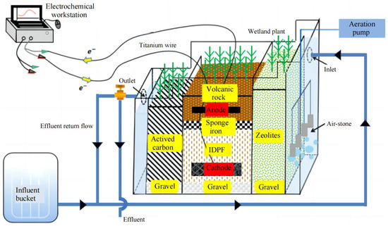 - Hou, X.; Chu, L.; Wang, Y.; Song, X.; Liu, Y.; Li, D.; Zhao, X. Microelectrolysis-integrated constructed wetland with sponge iron filler to simultaneously enhance nitrogen and phosphorus removal. Bioresour. Technol. 2023, 384, 129270. [Google Scholar] [CrossRef] [PubMed]