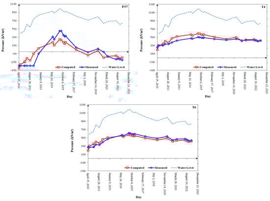 Measured and computed values of P37, T4, and T6 piezometers are given in Table 10.