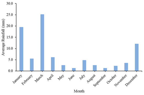 Average monthly rainfall from four meteorological stations in Al Ain city during the period 2013–2020.