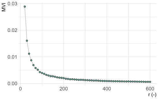 Decrease in MVI to a level close to zero. Above 500 realizations, the value MVI remained practically constant and near zero.
