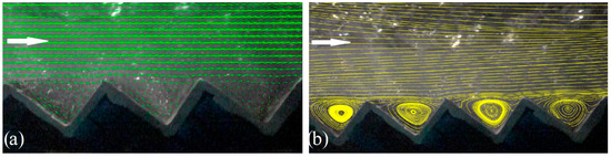 (a) Velocity vectors after post-processing; (b) streamlines in D-Model obtained from BIV analysis (flow direction from left to right).