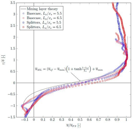 where corresponds to the mixing layer velocity, is the velocity at the infection point, is the minimum velocity in the mixing layer, and is the characteristic length scale of the mixing layer. denotes the elevation of the inflection point above the pseudo-bottom, under the conditions outlined below::