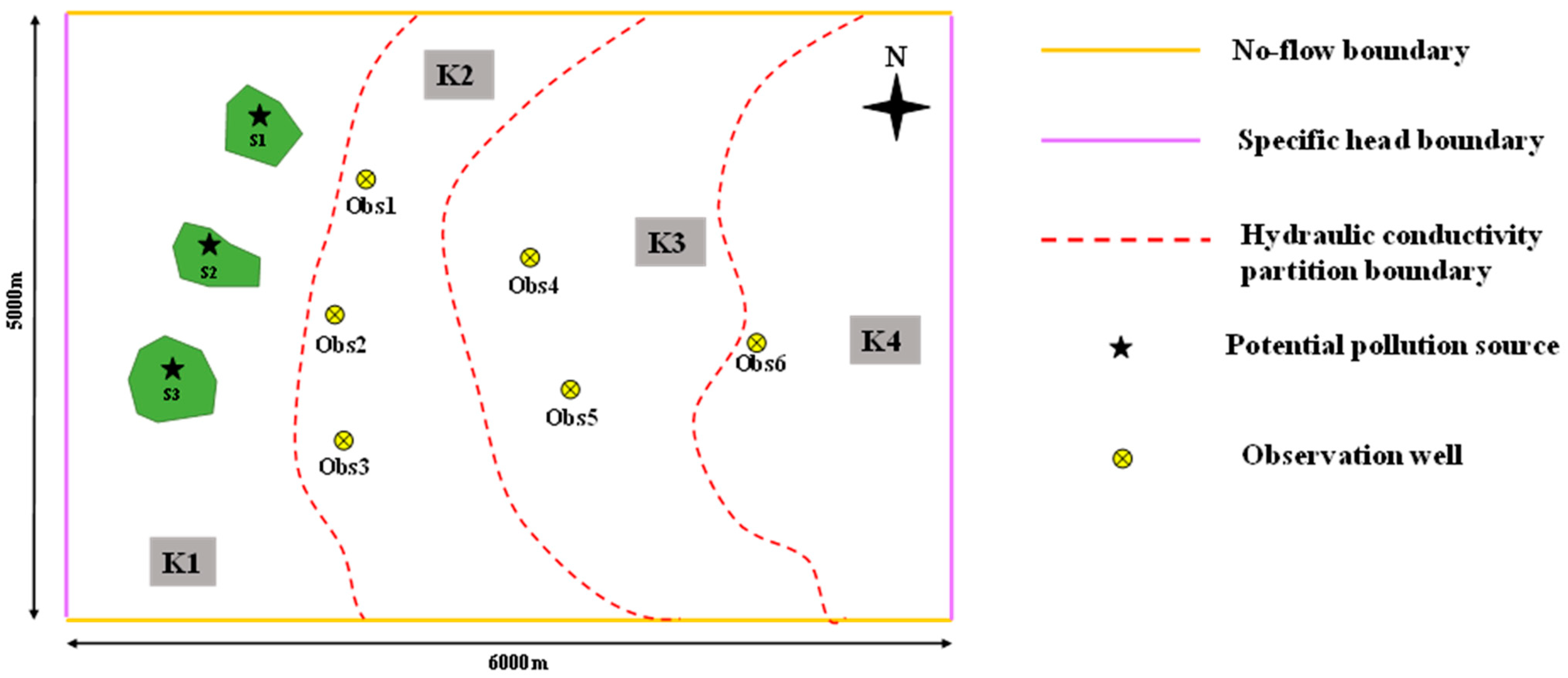 - Pan, Z.; Lu, W.; Chang, Z.; Wang, H. Simultaneous identification of groundwater pollution source spatial-temporal characteristics and hydraulic parameters based on deep regularization neural network-hybrid heuristic algorithm. J. Hydrol. 2021, 600, 126586. [Google Scholar] [CrossRef]