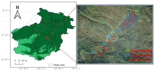 Luhun Reservoir is situated in Song County, Henan Province, within the longitude range of 112.06° E to 112.20° E and latitude range of 34.10° N to 34.21° N. It is one of the water sources for the cities of Luoyang and Zhengzhou, and includes other functions such as irrigation, power generation, aquaculture, and tourism. The control basin area of Luhun Reservoir is 3492 km2, constituting about 60% of the total expanse within the Yi River basin. The reservoir boasts a storage capacity of 1.22 billion m3, accompanied by an average water depth measuring 9.50 m and a maximum water depth reaching 31.00 m. A total of 10 sampling points were established in this investigation, with 6 sampling points (sampling points 1–6) designated within the main reservoir area, and an additional 4 sampling points (sampling points 7–10) strategically positioned along the upstream river, as illustrated in Figure 1. The latitude and longitude information for all sampling points is presented in Table S1.