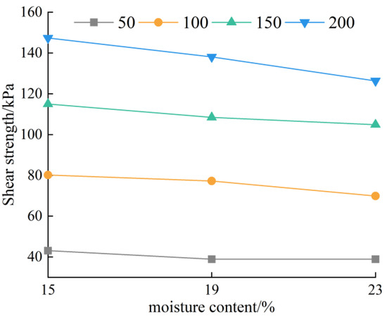 4.2.2. Analysis of Shear Strength of Plain Soil under Different Moisture Contents