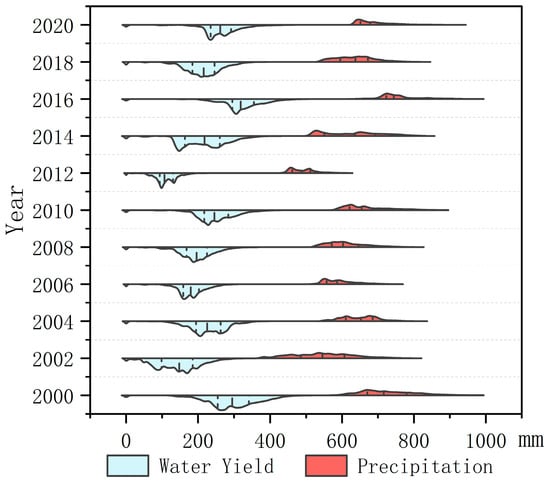Water is a key component of ecosystems, providing habitat and material circulation for plants and animals [,]. It also produces water-related ecosystem services [,,], which are crucial for maintaining ecosystem functions, ensuring water supply, promoting agricultural production, and regulating arid climates [,,]. Water yield, an important aspect of ecosystem services, estimates freshwater inputs, such as rain, snow, and snowmelt, flowing into streams and rivers. Factors affecting water yield include precipitation, evapotranspiration, basin size and location, and the primary source of water (rainfall or snowmelt). Consequently, water yield is essential for the healthy development of society and ecosystems.