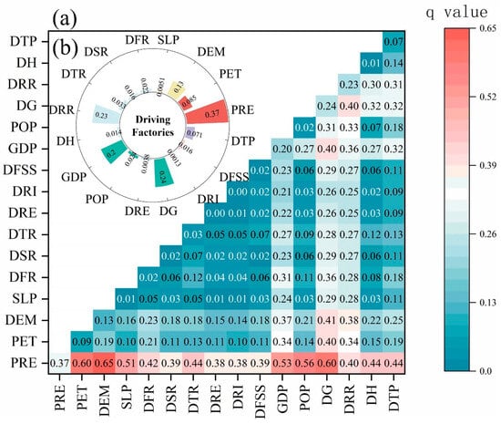 Driving factors detection results: (a) the interactive detection results of each driving factor; (b) factor detection results of each driving factor.