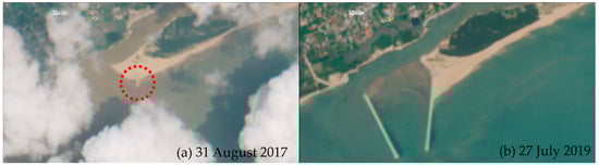 In this study, Sentinel-2 images covering the period from 2017 to 2023, which depict the sand spit at the Loc An River mouth (Figure 1), were selected for analysis. The details of the Sentinel-2 images are presented in Table 1.