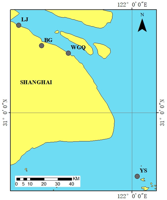 Water samples were collected from four ports in Shanghai from July to September 2023. The locations of ports are shown in Figure 1 and Table 1. Three samples were taken from the upper water (50 cm below the water surface, U), middle water (between the water surface and bottom, M), and bottom water (50 cm above the sediments, B) at each port. Each sampling site sampled 15 L of water and mixed it using an upright water collector, repeatedly three times. All water samples were stored in 1L sterile brown polyethylene bottles. All bottles were stored in polyethylene ice boxes at 4 °C and were quickly transported to the laboratory within 2 h.