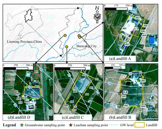 Studies on ECs remain preliminary, with most being concentrated in developed countries and in the southern coastal cities of China [,,,,] and other developed regions. Among these studies, those focusing on ECs in LL and surrounding environmental media, particularly in groundwater, remain sparse. These studies are particularly few in developing countries and northern China. The aim of the present study was to characterize ECs in landfill leachate and surrounding groundwater in NE China. One and three hazardous waste landfills (HWLs) and municipal solid waste landfills (MSWLs) in NE China were selected as study areas, respectively. The present study statistically analyzed the distributions of ECs in LL and groundwater among the different case study landfills. Differences in EC characteristics based on landfill operation years, anti-seepage conditions, and filling types were identified and reported. The results of the present study can guide increased understanding of the types and concentrations of ECs in LL and groundwater. The results can also guide the formulation of policies for managing HWLs and MSWLs.