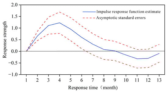 Impulse response using vector autoregression (VAR) results (water level of Heilongtan Spring response to precipitation variability (monthly scale), 2013–2021).