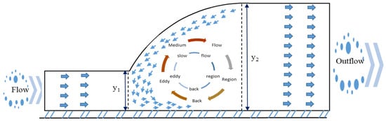 where is the total energy, H is the height, is the critical depth, v0 is the velocity of the flow, and g is the acceleration due to gravity. The critical depth, yc, and velocity head can be changed, and this is expressed as follows. The difference in sequent depth ratio (y2/y1) against the normalized critical depth (yc/h) [31].