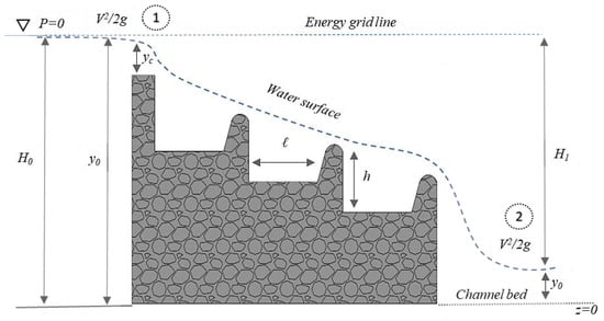 Energy loss can be calculated as , which is the difference between the energy upstream of the spillway and the downstream energy , as follows: