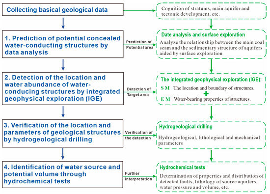 - Detection of the location and water abundance of water-conducing structures by integrated geophysical exploration (IGE)
