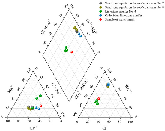 - Hydrochemical analysis was employed to analyze the inrush water sources and runoff conditions. According to the spatial relations between the source aquifer and mining spaces, the vertical extension range of the concealed water-conducting structures was roughly estimated.