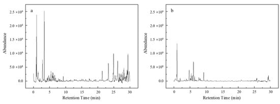 LC-MS analysis of active biomolecules of Fe NPs: (a) normal-phase chromatography; (b) reverse-phase chromatography.