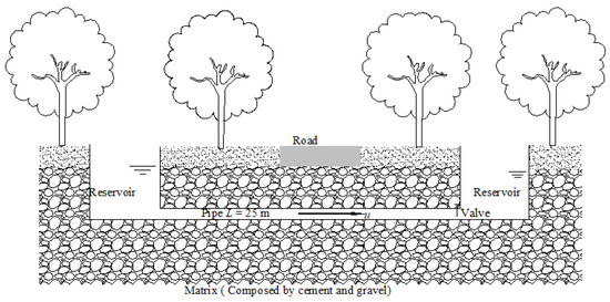 Side view of the buried-pipe water-conveyance system.