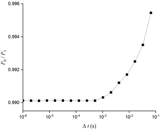 Figure 5 shows that the FVM is convergent with Δt < 10−3 s, and the main frequencies of the water supply system are less than 104 Hz [19]; thus, the time step Δt = 10−4 s can display the most fluid and structural patterns. Accordingly, the length of each control volume Δx = 0.1 m.