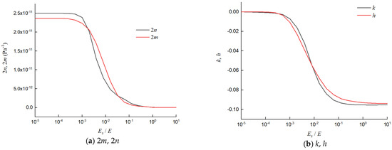 Variation in 2m, 2n, k, and h with Es/E.