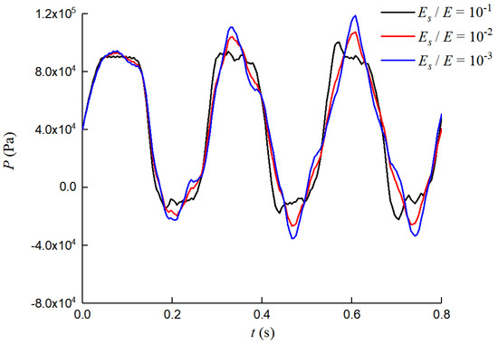 Numerical dynamic pressure at the valve under different Es/E values.