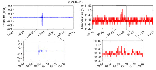 Water temperature increased in the aquifer by 0.06–0.09 °C during three industrial explosions in the western quarry side in the depth interval of −150 m to 15 m. The pressure in the “reservoir–well” system changed by 0.4–2.2 kPa (Figure 9).