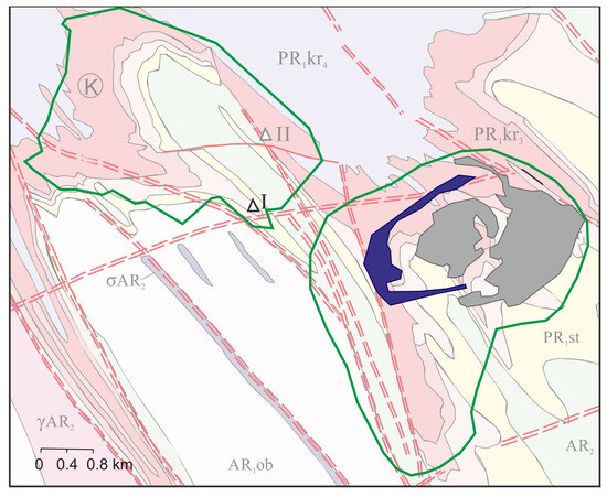The upper floor is the sedimentary cover folded mainly by terrigenous sedimentary deposits of Mezo-Cenozoic and covers transgressively the crystalline basement. Deposits of Paleozoic presented by the ore breccia and sandstones of the late Devonian 2–6 m thick show irregular bedding at the eroded cover of the Archaea-Proterozoic basement (Figure 1).
