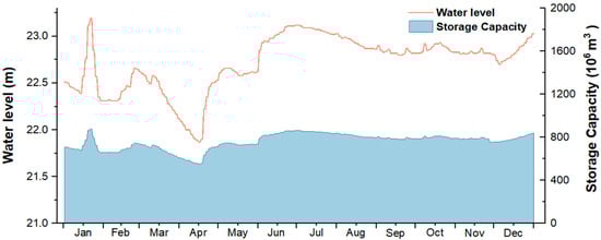 Daily water level and storage capacity of Luoma Lake in 2023.