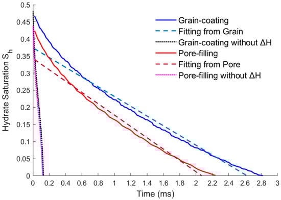 According to Equation (15), the fitting results of the hydrate dissociation rate of the two models can be directly obtained as below.