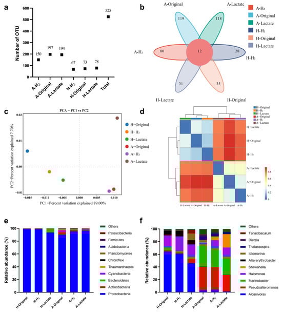 | Genus/Species | H-Original | H-H2 | H-Lactate | A-Original | A-H2 | A-Lactate | |