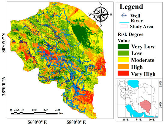 The resulting BRT map shows that approximately 21.69%, 23.77%, 44.56%, 1.92%, and 8.06% of the study area fall under very high, high, medium, low, and very low sensitivity zones, respectively (Figure 6e and Table 5). The BRT index based on GwPR (Figure 6e) shows that the BRT model predicts the largest area for the “medium” class, which is mainly in the central part of the study area.
