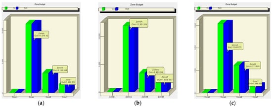 Numerical simulation water balance prediction result: (a) K Decrease, (b) K March, and (c) K Increase.