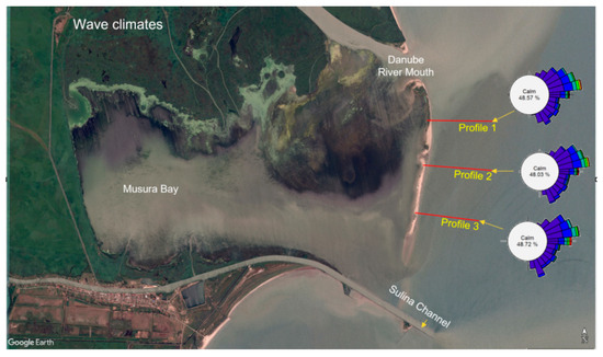 Meteorological data recorded at the Sulina meteorological station from 1 January 2013 to 31 December 2022 were also used in this study. These data included multiannual monthly wind roses, average wind speed by direction, wind frequency by direction, wind frequency at different speed thresholds, maximum wind speed and its corresponding direction, and maximum gust wind speed.