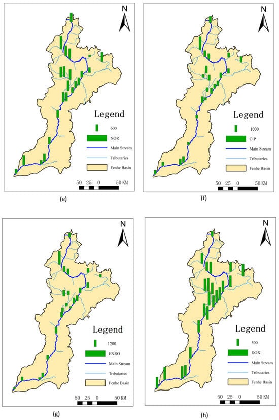- Liu, R.; Wang, Y.; Wang, L.; Wang, Y.; Peng, X.; Cao, L.; Liu, Y. Spatio-temporal distribution and source identification of antibiotics in suspended matter in the Fen River Basin. Chemosphere 2023, 345, 140497. [Google Scholar] [CrossRef] [PubMed]