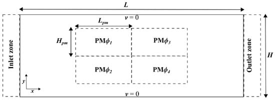 In contrast, knowledge of the porous medium structure is not required in REV-scale calculations since it is accounted for by simply adding a resistance source term into the momentum equation [6,7,8,9]. A REV is employed to represent the porous matrix, within which the macroscopic properties and flow behavior are assumed to be homogeneous and statistically representative of the medium as a whole [8]. This procedure allows simulations to be carried out on larger scales with a much lower computational cost. In this approach, the Ergun equation is used to calculate the pressure losses caused by viscous dissipation and kinetic energy losses [10]. Ergun’s equation has been used to assess the accuracy of the REV-scale approach in homogeneous porous media [11,12]. It has been also modified to predict pressure losses in randomly packed trickle bed reactors filled with trilobular particles [13]. In addition, Lai et al. [12] proposed a resistance correction coefficient, which takes values between 0 and 1, to improve flow predictions in cases where the structured porous medium of open cells exhibits high porosity. However, there is little work in the literature dealing with applications of the REV-scale approach to the description of fluid flow through heterogeneous porous media. For example, Li et al. [14], with the purpose of understanding packed beds composed of heterogeneous granularity in alternate layers (HAL), developed a coupled LES-LBM-IMB-DEM model to evaluate the interface characteristics of a fluid–solid system, velocity and pore distribution, resistance loss mechanism at the interface, and specific pressure drop relationship between the interface region and the bulk layer section. Also, Li et al. [15] studied the effects of different packing configurations on permeability using CFD tools coupled with the discrete element method (CFD-DEM). In a recent paper, Turkyilmazoglu and Siddiqui [16] studied, by means of a linear stability analysis, how the natural convection inside an impermeable porous channel with imposed isoflux boundary conditions is influenced by the Brinkman–Darcy–Bénard convection model.