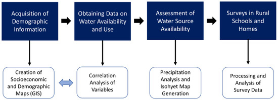 The objectives of this study are centered on the characterization of the hydrosocial cycle in the Metropolitan Region, with an emphasis on the differences in and characteristics of the rural areas within the region. Additionally, the study seeks to establish a relationship between water availability and socioeconomic aspects. Finally, an analysis of surveys applied to individuals in rural areas affected by drinking water availability is conducted, aiming to determine perceptions about water use and demand.
