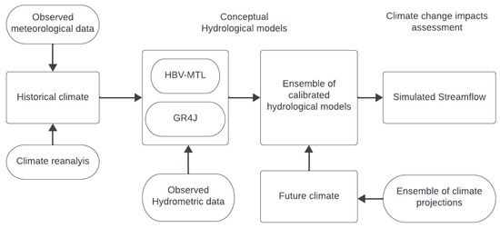Both hydrological models were calibrated against observed streamflow data from gauges at the outlet. The primary input consisted of an ensemble of climate datasets from the historical period, including station-based observations, an ensemble of GCMs, and reanalysis datasets.