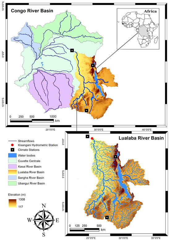 - Alsdorf, D.; Beighley, E.; Laraque, A.; Lee, H.; Tshimanga, R.; O’Loughlin, F.; Mahé, G.; Dinga, B.; Moukandi, G.; Spencer, R.G.M. Opportunities for hydrologic research in the Congo Basin. Rev. Geophys. 2016, 54, 378–409. [Google Scholar] [CrossRef]