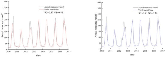 Determination and verification of the runoff rate of the model (the longitudinal coordinate indicates the runoff unit: m3).